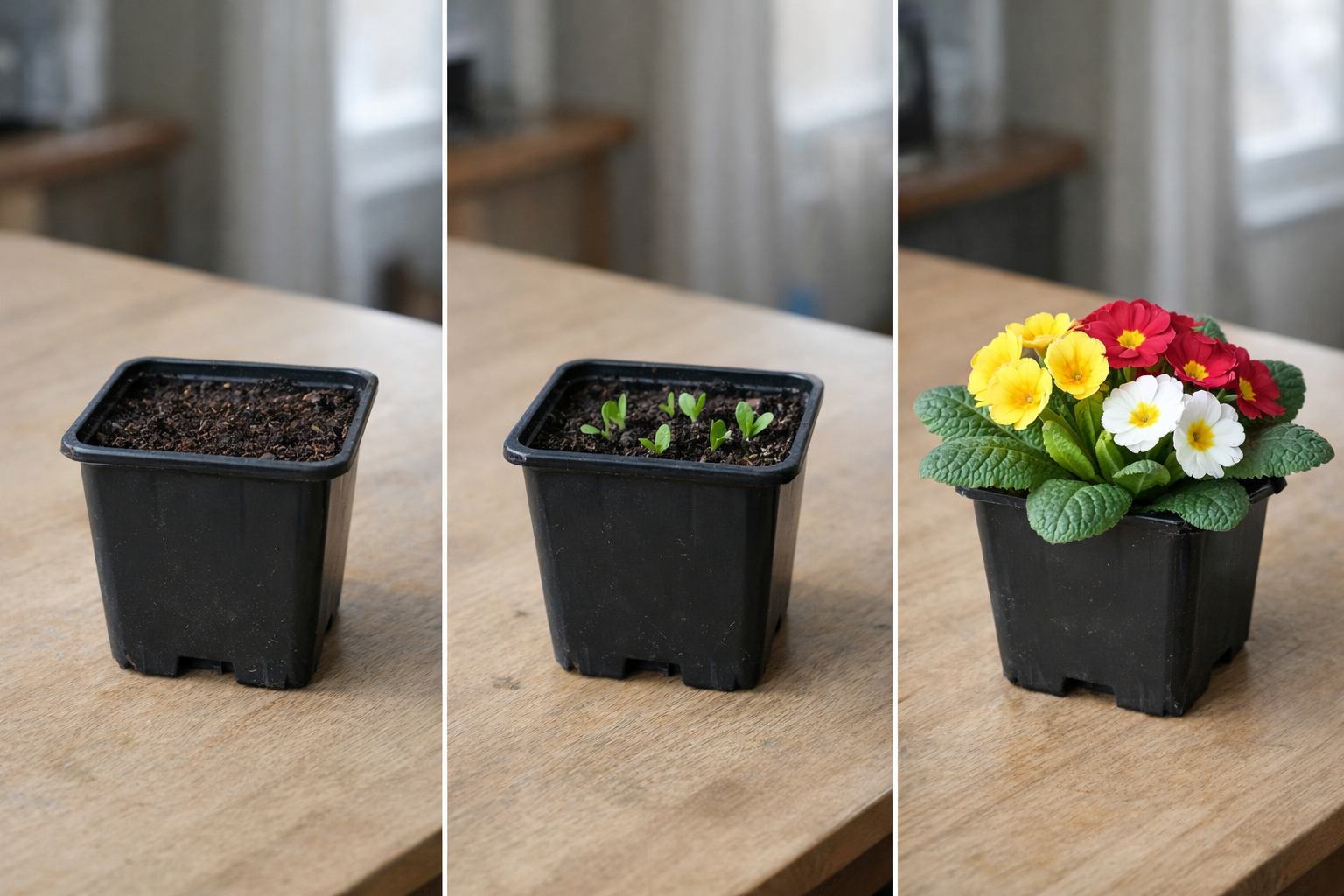 Наша примула — це інший підхід. Ми використовуємо спеціально підібраний поживний субстрат, у якому рослина може нормально рости, а не “доживати”. Насіння вже висаджене правильно, у стабільне середовище, без стресу від пересадок і різких змін. Саме тому примула не бореться за виживання — вона одразу запускає ріст і готується до цвітіння.