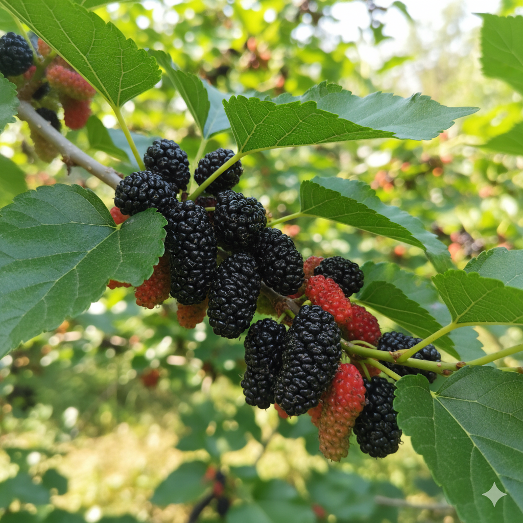Шовковиця кущова «Марічка» — новий український сорт, створений спеціально для нашого клімату. Вона має компактну форму куща, що зручно для догляду навіть на маленькій ділянці, і при цьому щороку дарує рясний урожай. Це ідеальний вибір для тих, хто хоче мати декоративну рослину та солодкі ягоди одночасно.