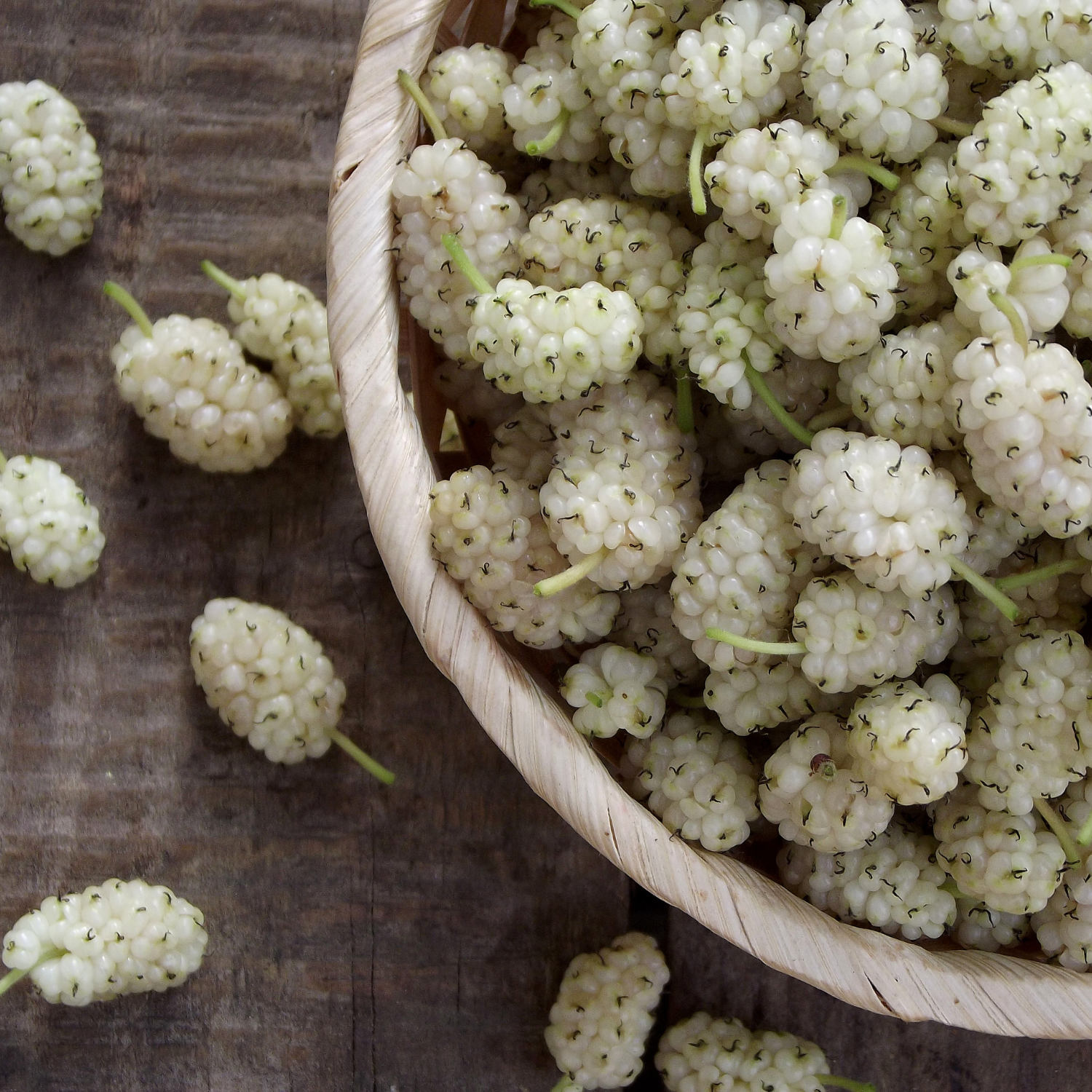 Ягоди великі, до 4 см та 15 г кожна. Маються медовий смак. Біла шовковиця має більш пружні ягоди. Плоди добре тримаються на гілках, та до останнього не обпадають.
