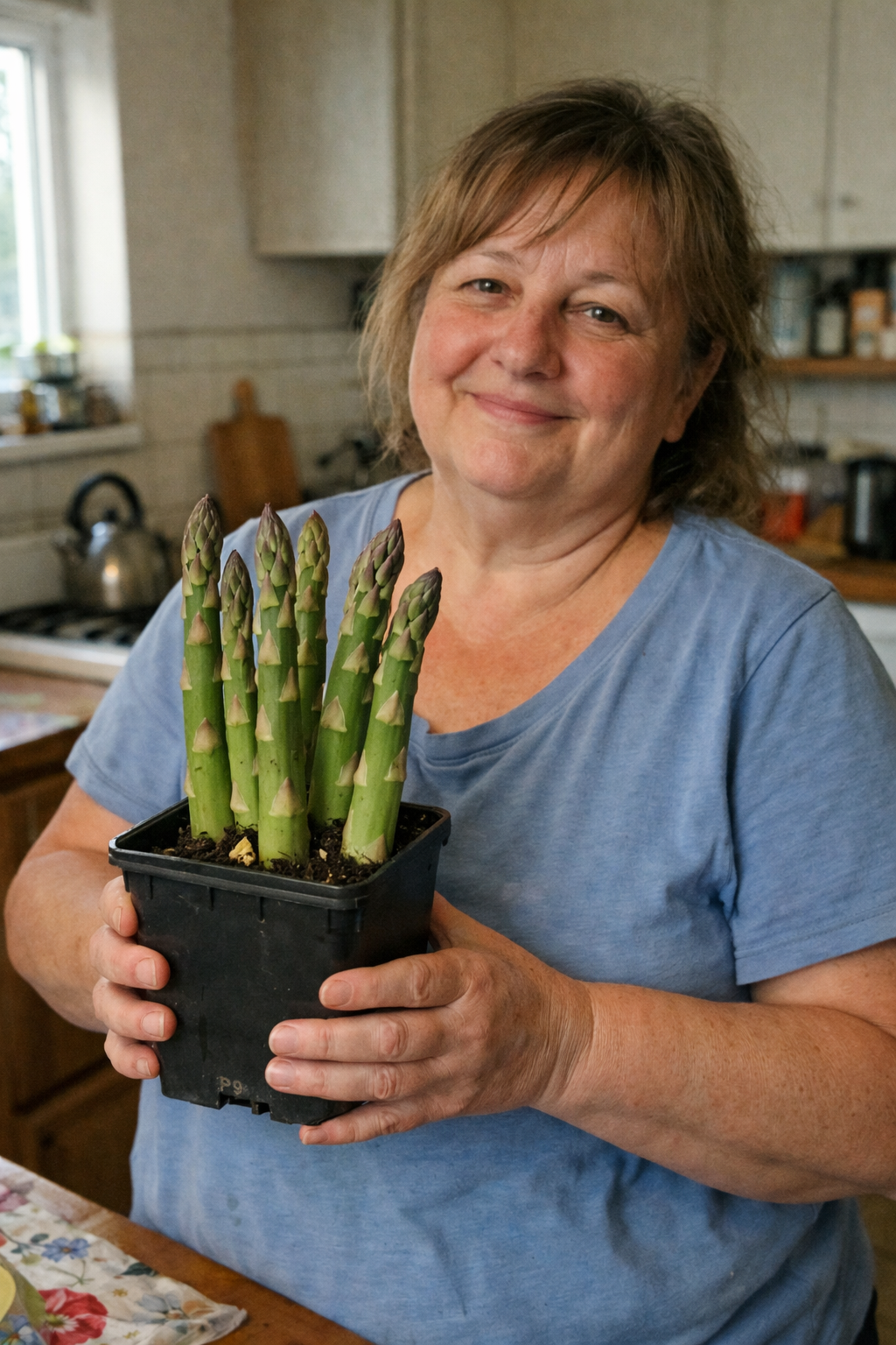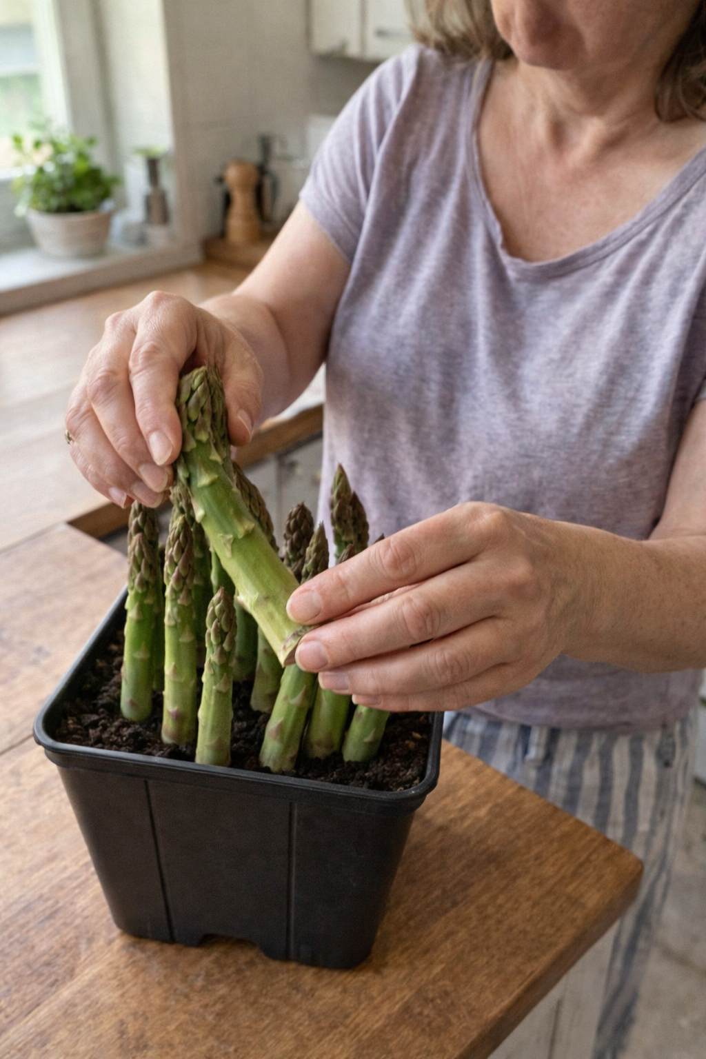 Після отримання горщика достатньо просто поставити його у світле місце і підтримувати помірний полив. Рослина не проходить стресу від пересадки, швидко адаптується і починає рости одразу, використовуючи закладений у субстрат запас поживних речовин. Це зручне рішення для тих, хто хоче вирощувати спаржу без зайвих дій і досвіду.